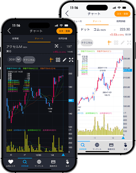 1つのアプリで日本株も米国株も取引可能。