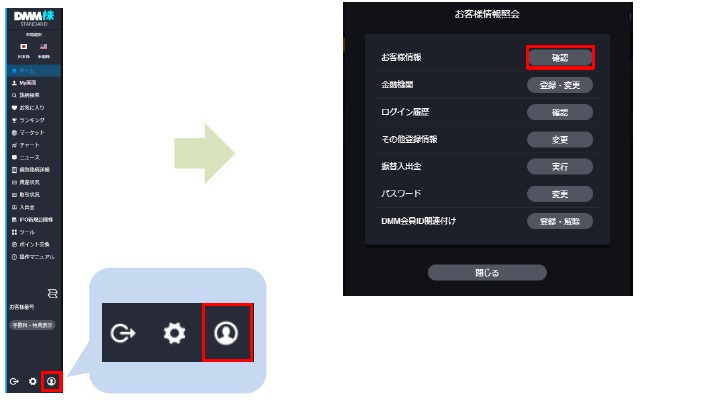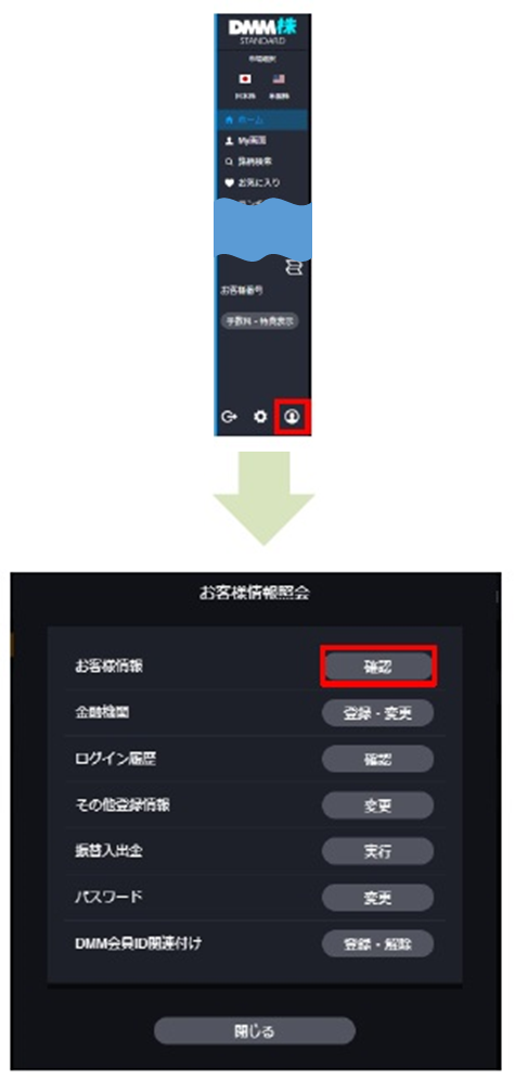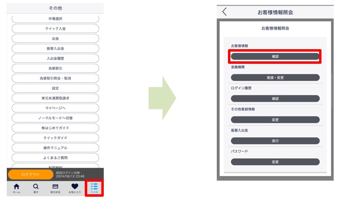 2.[お客様情報照会]>[お客様情報]の[確認]をクリックします。