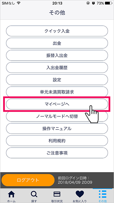 [その他]>[マイページへ]をタップ