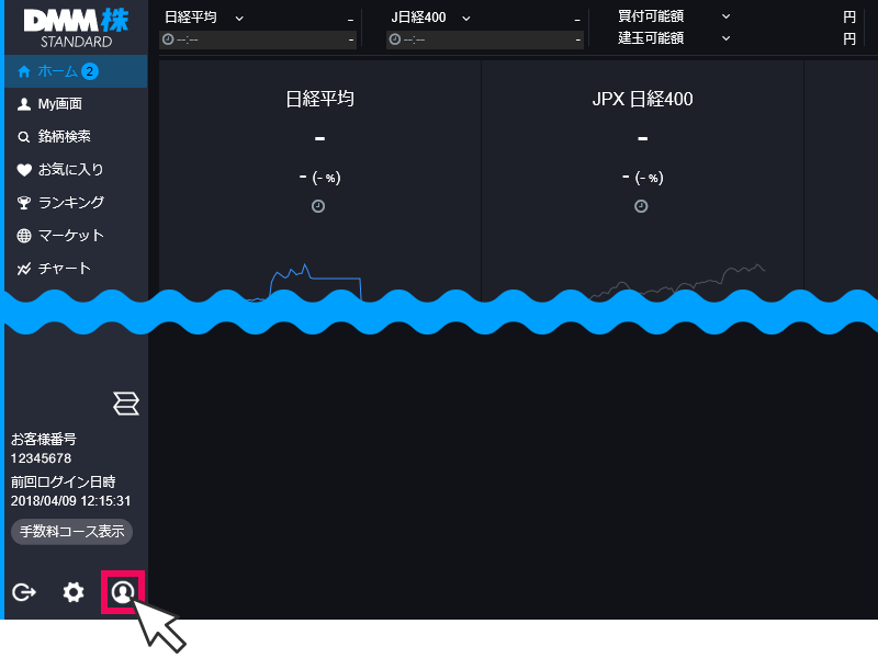 画面左下の[お客様情報照会]のマークをクリック