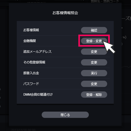 金融機関の[登録・変更]をクリック