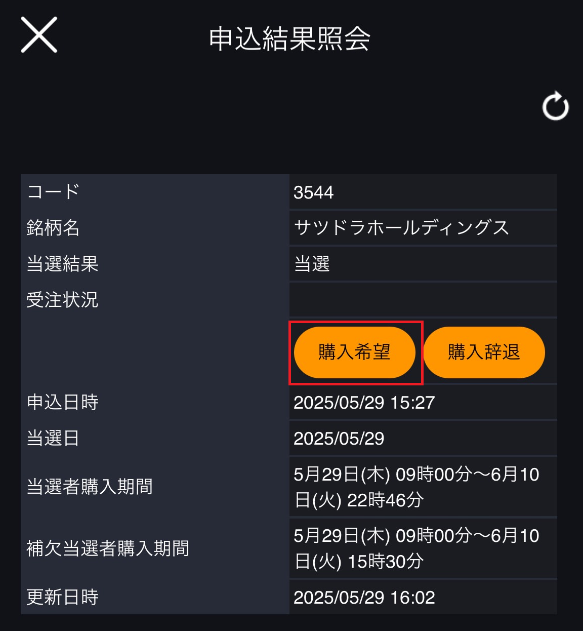 「購入希望」をタップします。