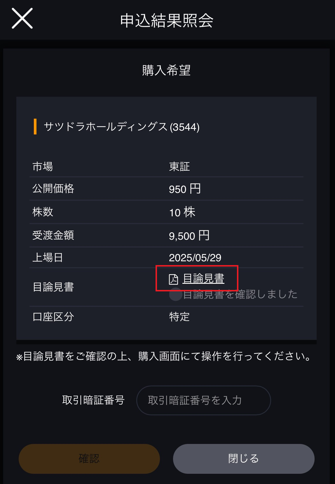 IPOで当選した銘柄の目論見書は、どこで確認できますか?
