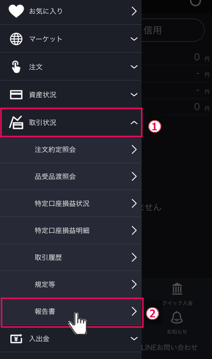 - 電子交付書面閲覧画面で、帳票種類から「取引残高報告書」からご確認いただけます