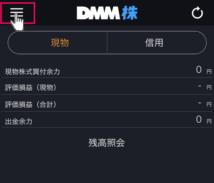 ▼スマホアプリ『DMM株』 ノーマルモードの場合
