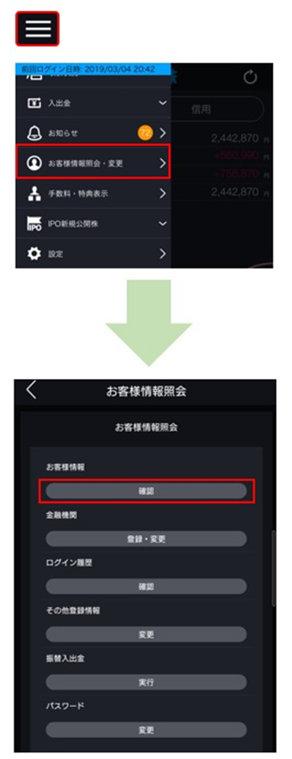 3. [お客様情報]の[確認]をタップします。