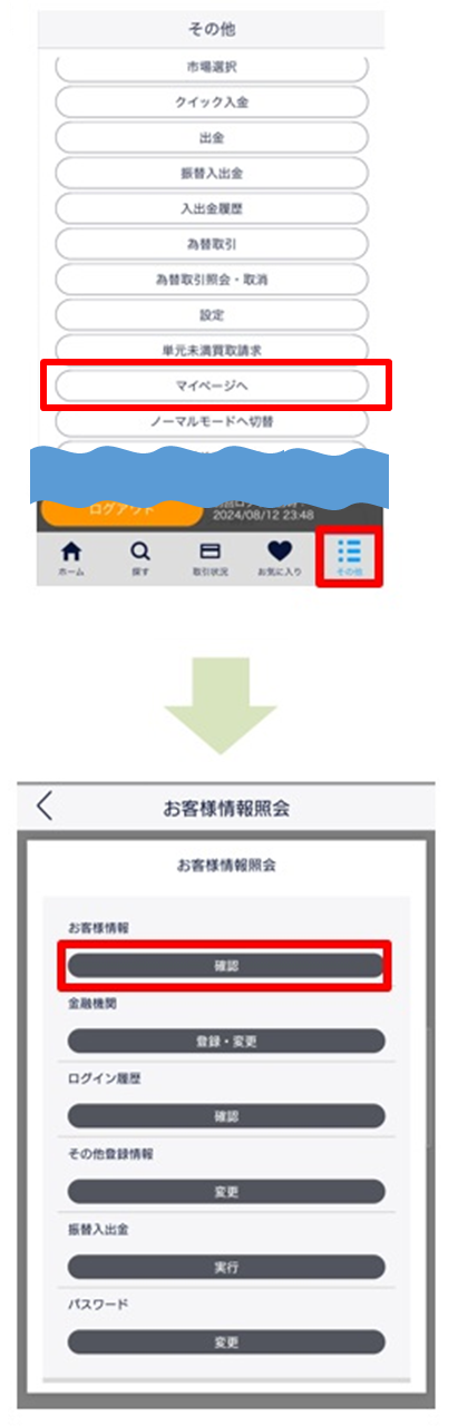 3. [お客様情報]の[確認]をタップします。