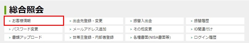 2. マイページ中段にある[総合照会]>[お客様情報]をクリックします。