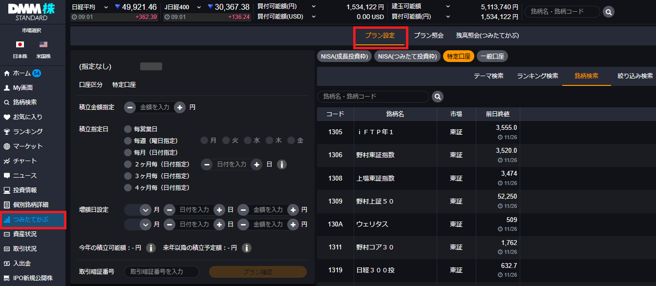 PC WEB版『DMM株 STANDARD』のつみたてかぶプラン設定方法を教えてください。